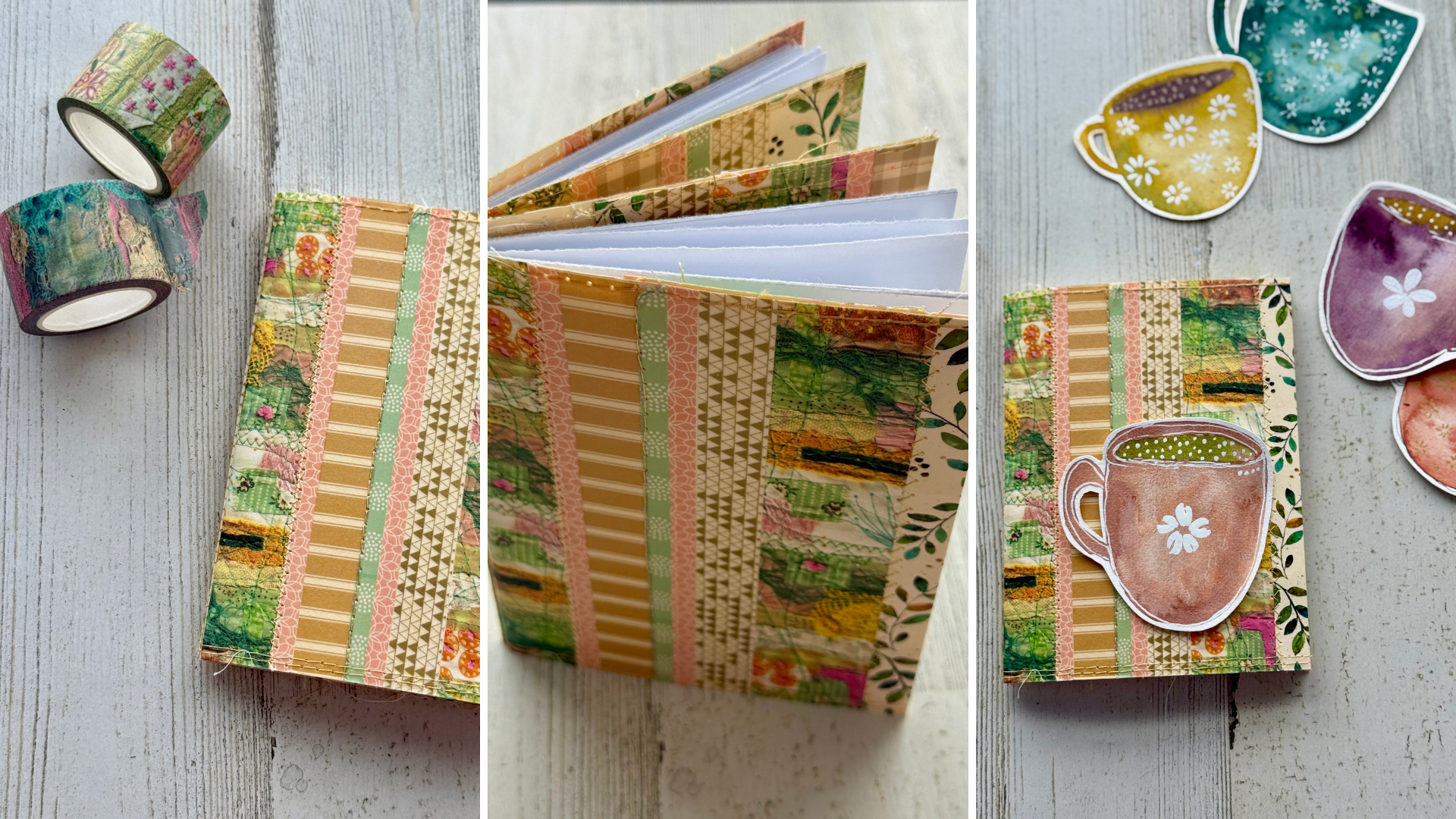 Perfect for beginners and anyone who loves washi tape, collage, fabric scraps and mixed media!
